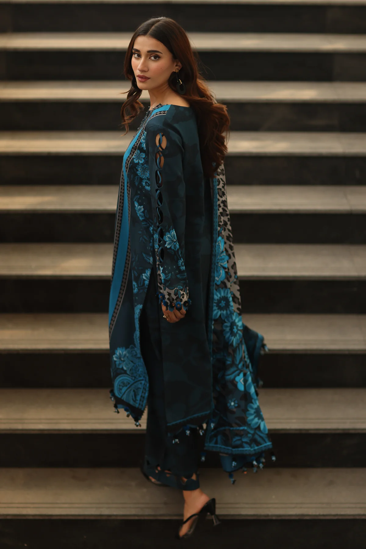 The “Charizma C-Prints Vol-2, Printed Linen salwar kameez with Printed Irish Linen Shawl” showcases the stunning latest linen collection in the UK.