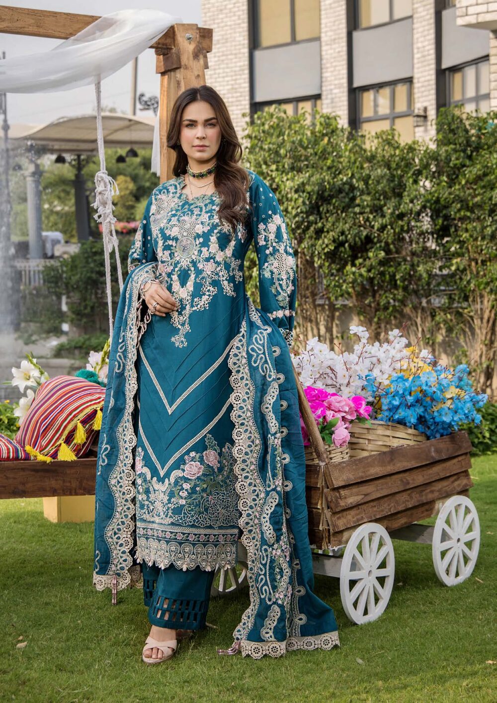 Eshaisha Luxury Lawn Embroidered Collection 2025 | EA-LL-5545 – Embroidered Teal Set