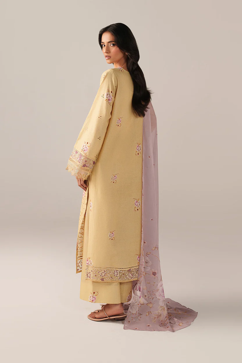 Shop Iznik Embroidered Printed Lawn – SS 11 in elegant butter yellow, featuring borer embroidered printed lawn, organza detailing, and breathable summer fabric. Complete with silk dupatta and next-day UK delivery.