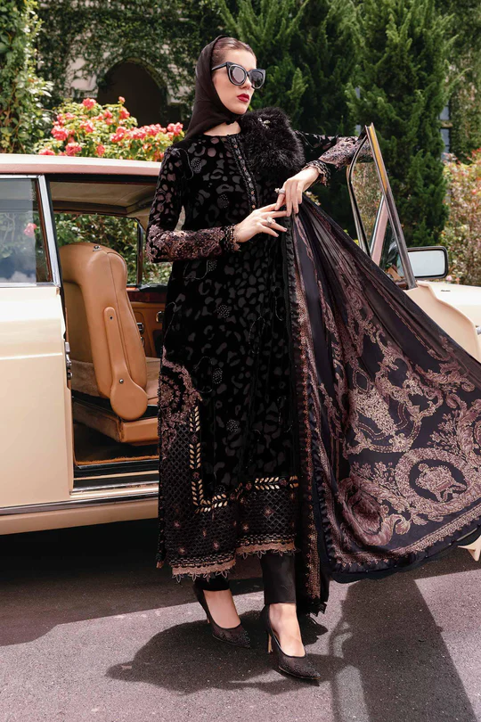 Maria B Winter Luxe 2025 | Embroidered Black Palachi Suit | WL-1301