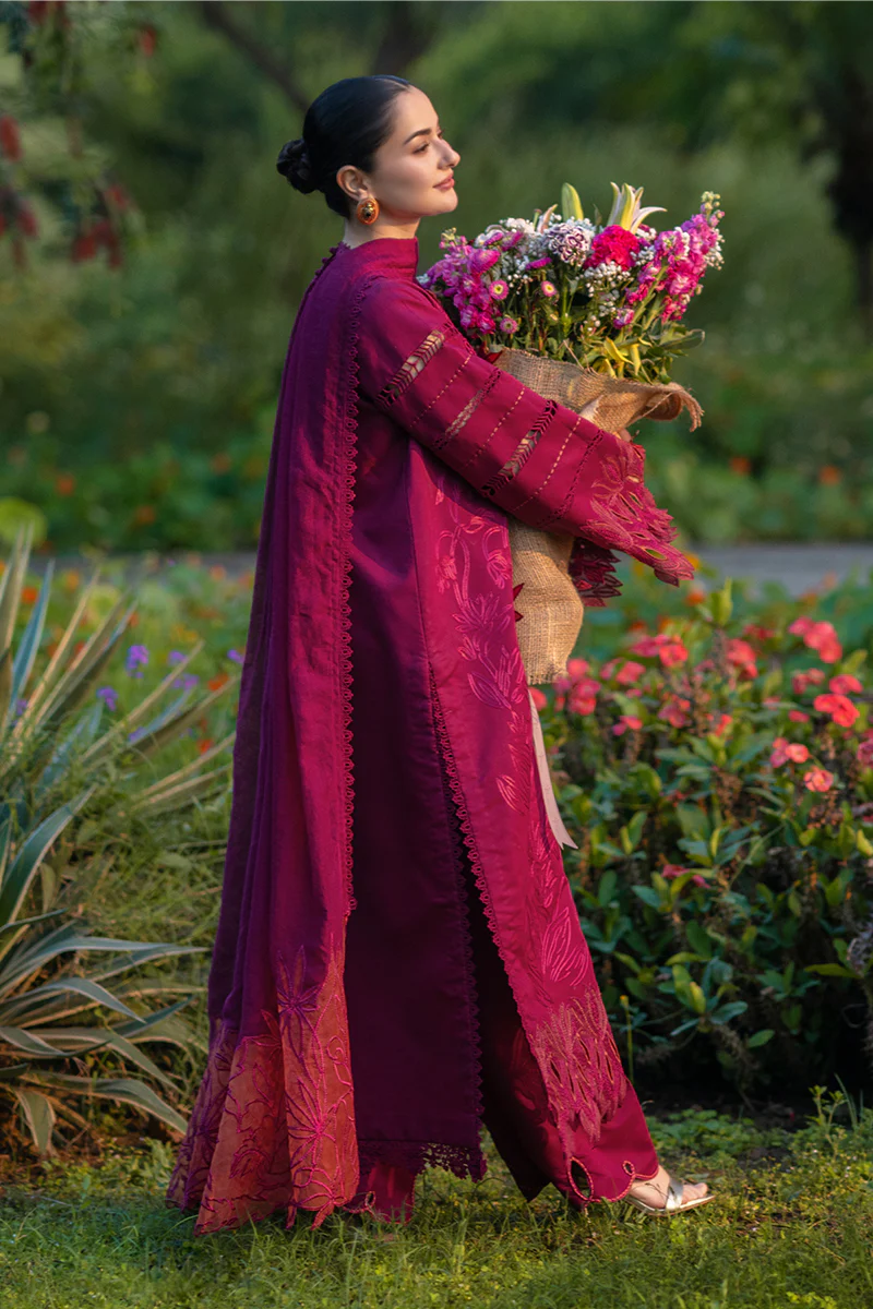 Rang Rasiya Unstitched Eid Outfit 26′ – AYRA, an original Rang Rasiya embroidered lawn suit for daily wear, Eid outfit, & summer season with soft, breathable fabric.