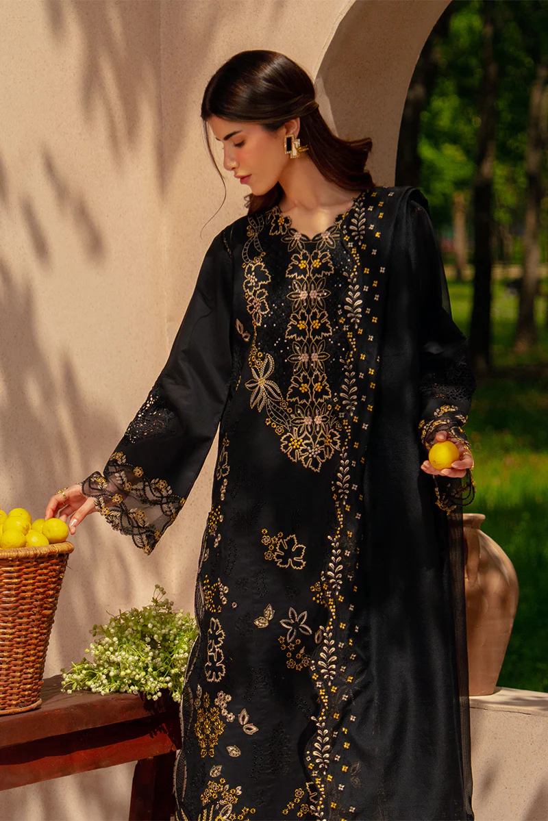 Rang Rasiya Unstitched Eid Outfit 26′ – LAYL, an original Rang Rasiya embroidered lawn suit for daily wear, Eid outfit, & summer season with soft, breathable fabric.