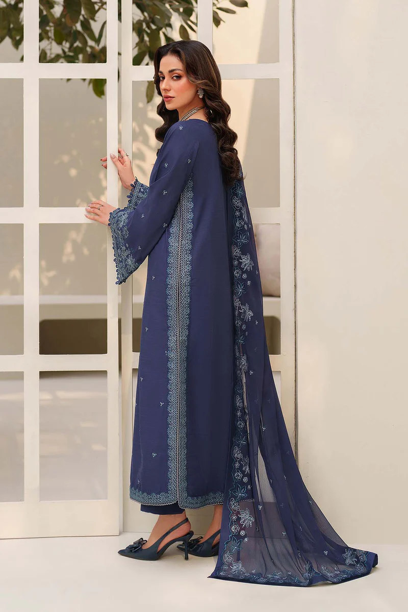 The new premium Zarif 3-piece, unstitched embroidered raw silk, paired with raw silk trousers, showcases the stunning latest winter collection for special occasions and party wear in the UK.